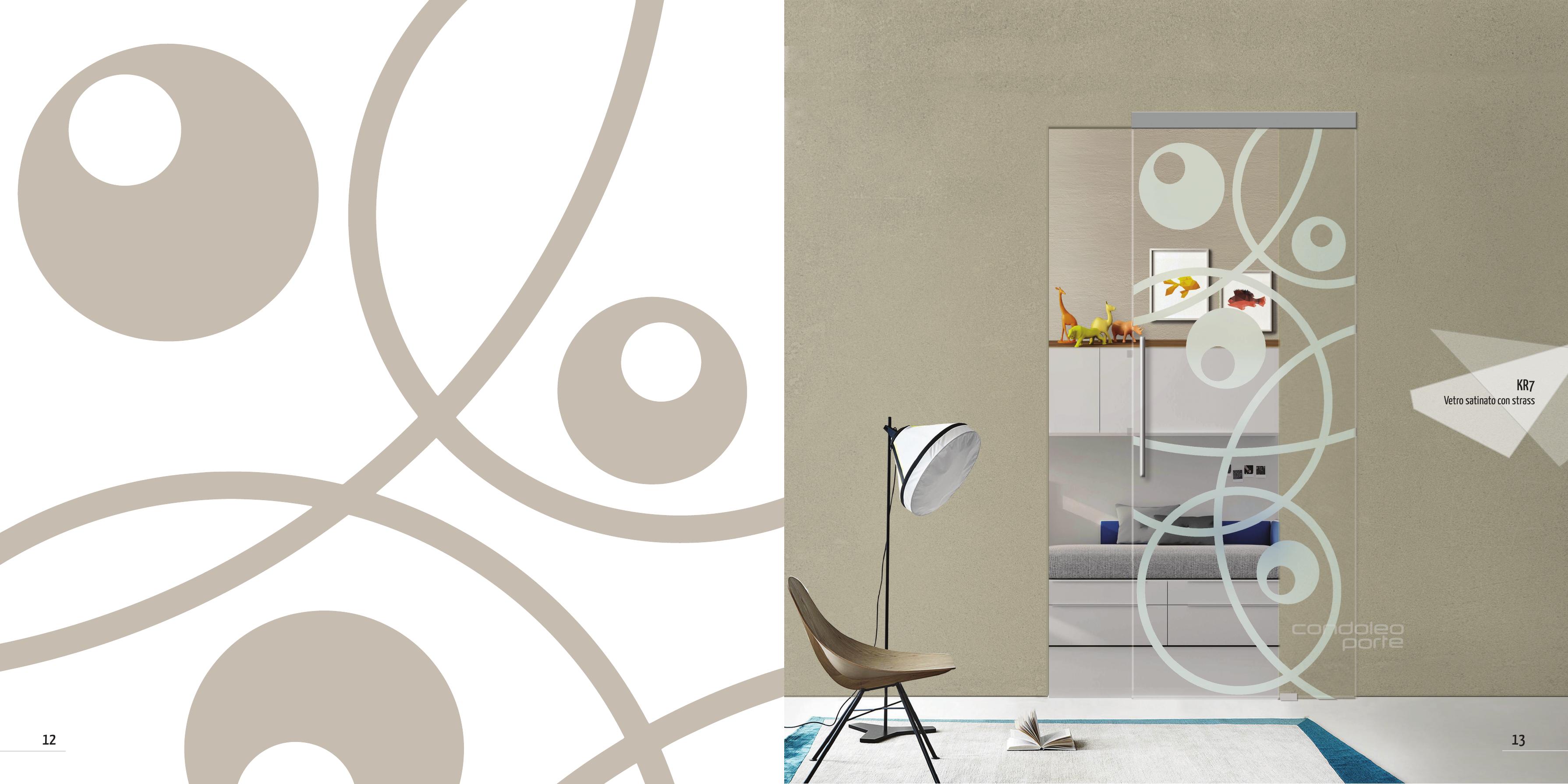 Ușă de interior din cristal by Condoleo Porte. Sticlă satinată cu decorație strass. Design unic și sofisticat. Ferramenta specială pentru sticlă. Made in Italy.