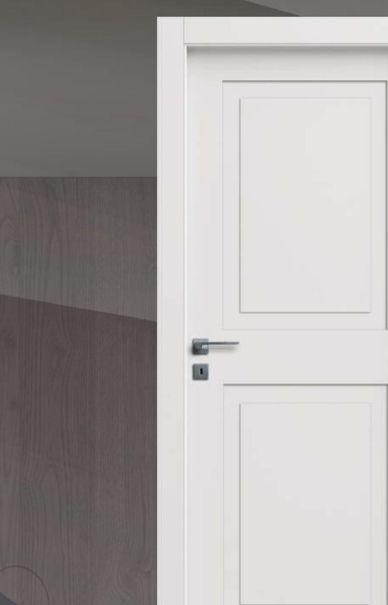 Ușă lăcuită cu 2 panouri clasice. În stoc, reversibilă.