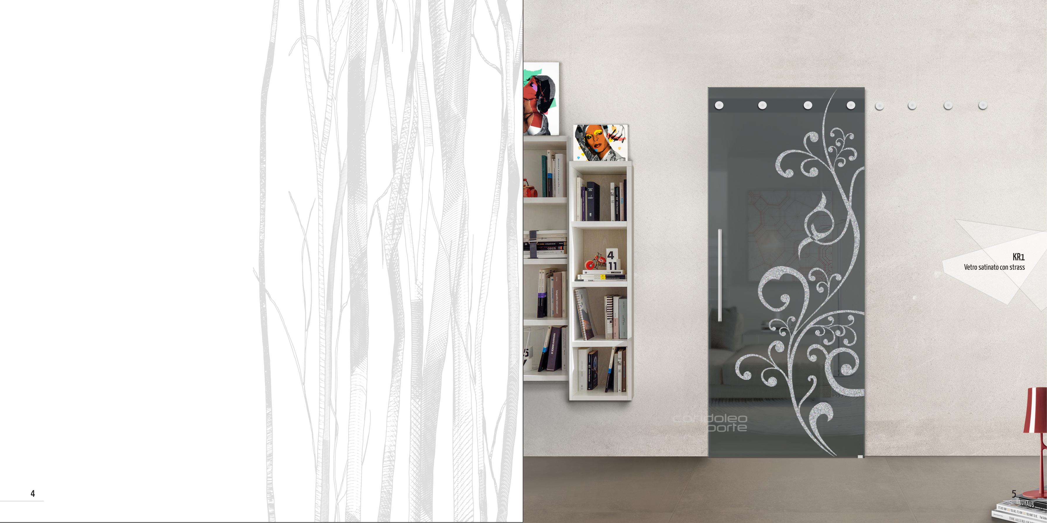 Ușă de interior din cristal by Condoleo Porte. Sticlă satinată cu decorație strass elegantă. Ferramenta special concepută pentru sticlă. Transparențe și jocuri de lumină care dau un plus de rafinament oricărui spațiu. Made in Italy.