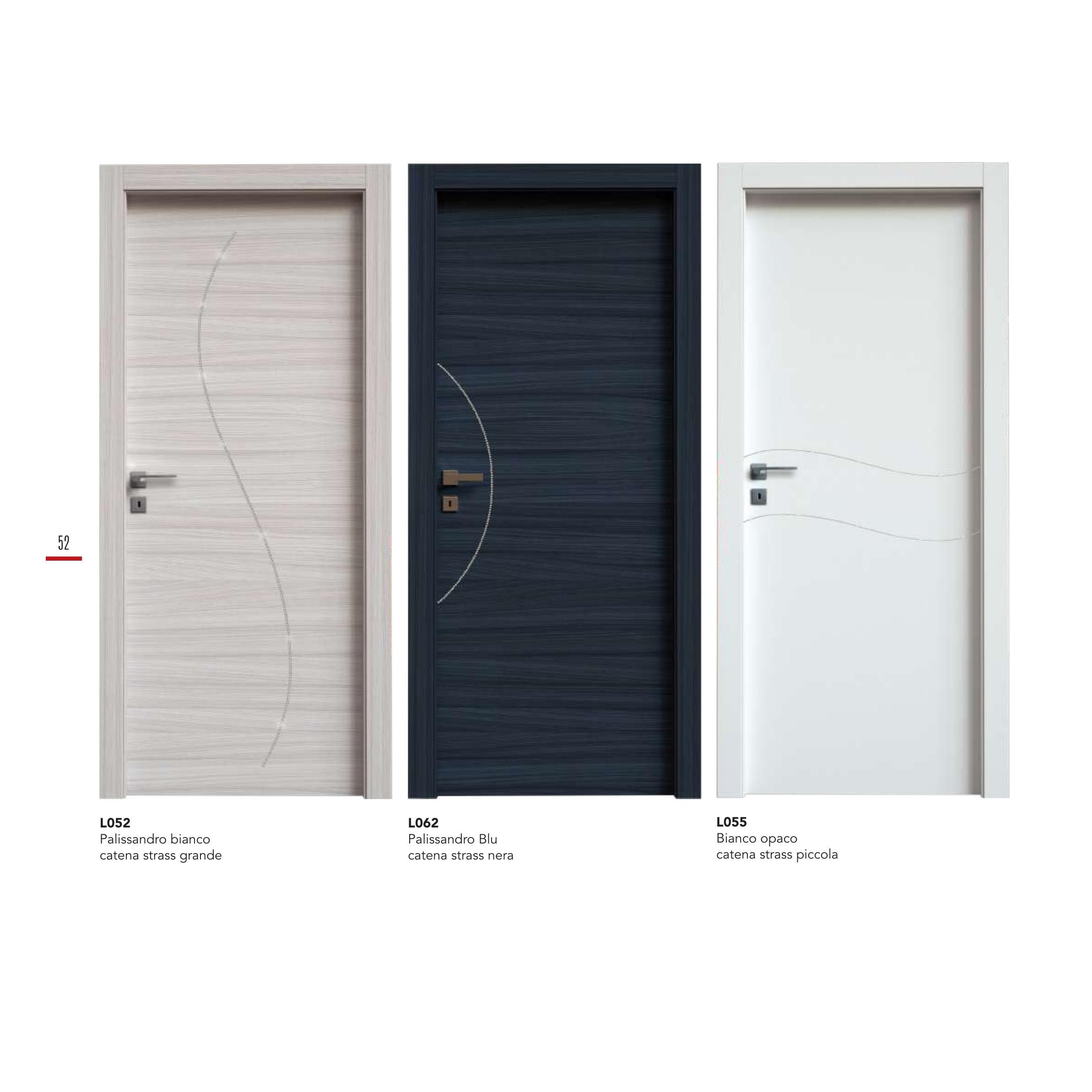 Ușă de interior Laminato by Condoleo Porte. Cu decorație elegantă catena strass. Disponibilă în: Palissandro bianco (strass grande), Palissandro Blu (strass nera), Bianco opaco (strass piccola). Made in Italy.