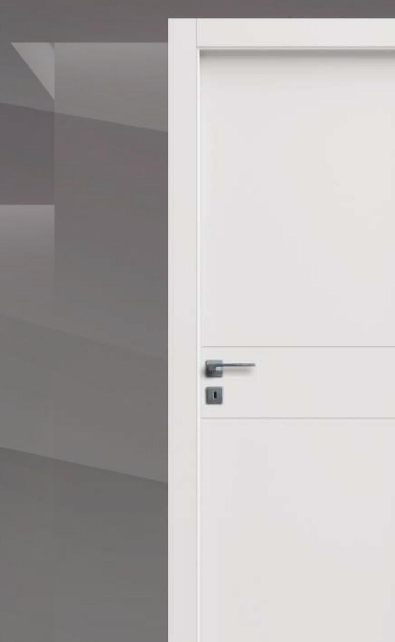 Ușă lăcuită cu 2 panouri orizontale. În stoc, reversibilă.