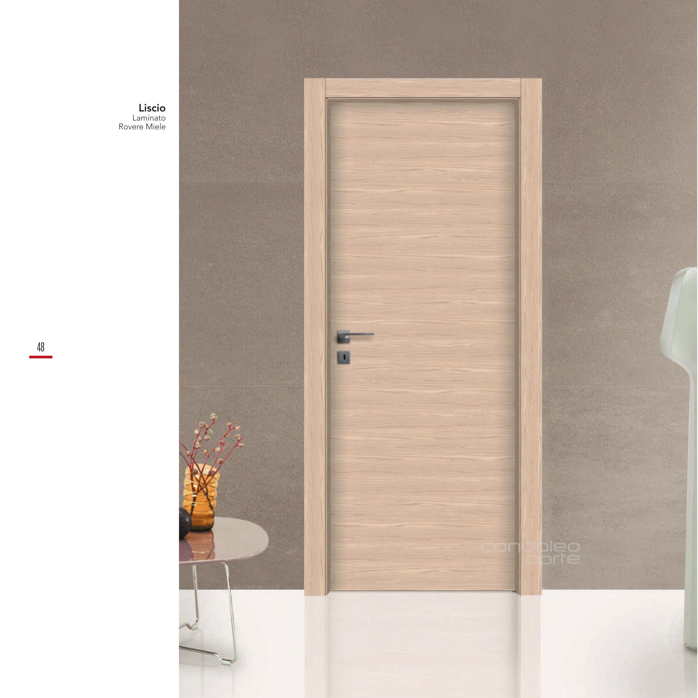 Ușă de interior Laminato by Condoleo Porte. Suprafață lisă cu finisaj laminat de înaltă calitate. Disponibilă în: Rovere Miele, Cemento, Tessuto. Design curat și modern. Made in Italy.