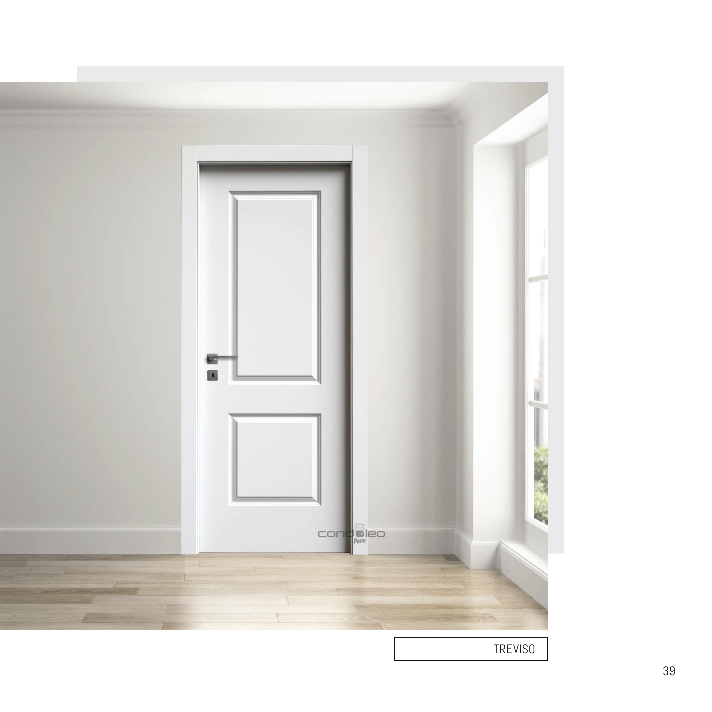 Ușă de interior Laccato din sub-colecția Treviso by Condoleo Porte. Design inspirat din stilul venețian clasic, cu detalii de lemn masiv și artă italiană. Finisaj lăcuit în orice culoare RAL. Made in Italy.